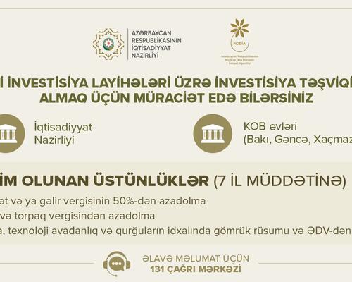Strateji investisiya layihələri üzrə investisiya təşviqi sənədlərinin verilməsi davam edir 1 Aprel 2026 12:24