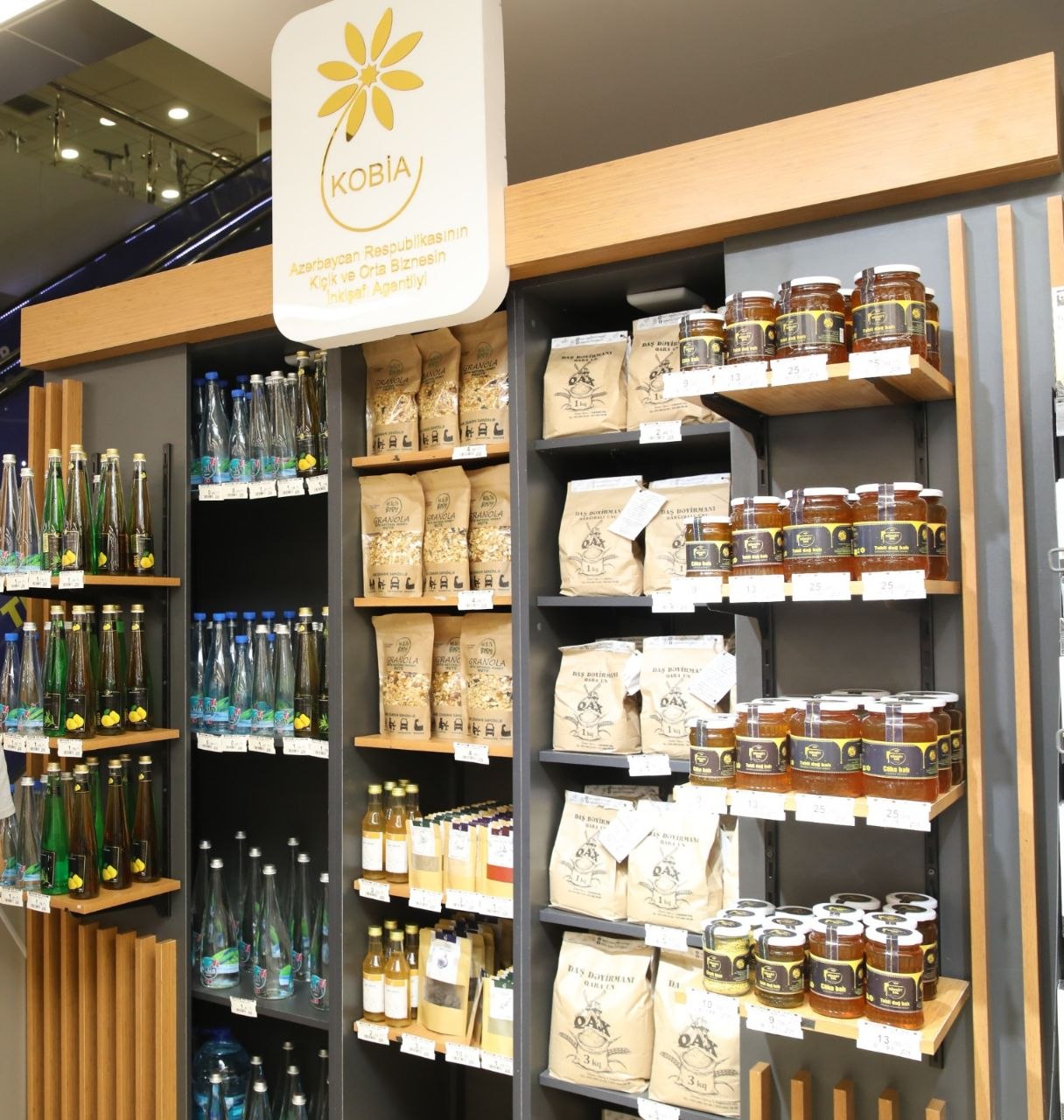 - Mikro və kiçik sahibkarların ticarət şəbəkələrinə çıxışında qarşılaşdıqları çətinlikləri nəzərə alaraq, KOBİA bu istiqamətdə xüsusi dəstək mexanizmi təqdim edir. Müvafiq qaydalara əsasən, Agentlik iri ticarət şəbəkələrinin mağazalarında icarəyə yer götürərək vahid stendlər yaradır və sahibkarların məhsullarını bu satış nöqtələrində yerləşdirir. Məqsəd yerli istehsal məhsullarının tanıdılması və satış imkanlarının artırılmasıdır.
