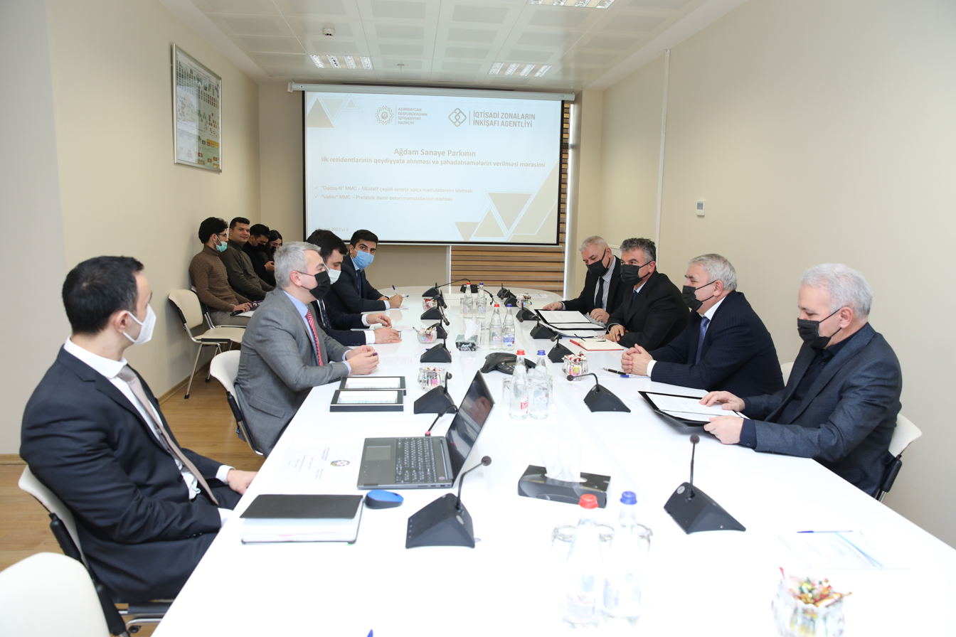 İqtisadiyyat Nazirliyinin İqtisadi Zonaların İnkişafı Agentliyində bununla bağlı keçirilən tədbirdə sahibkarlara Sənaye Parkının rezidentinin qeydiyyat şəhadətnaməsi təqdim olunub.
