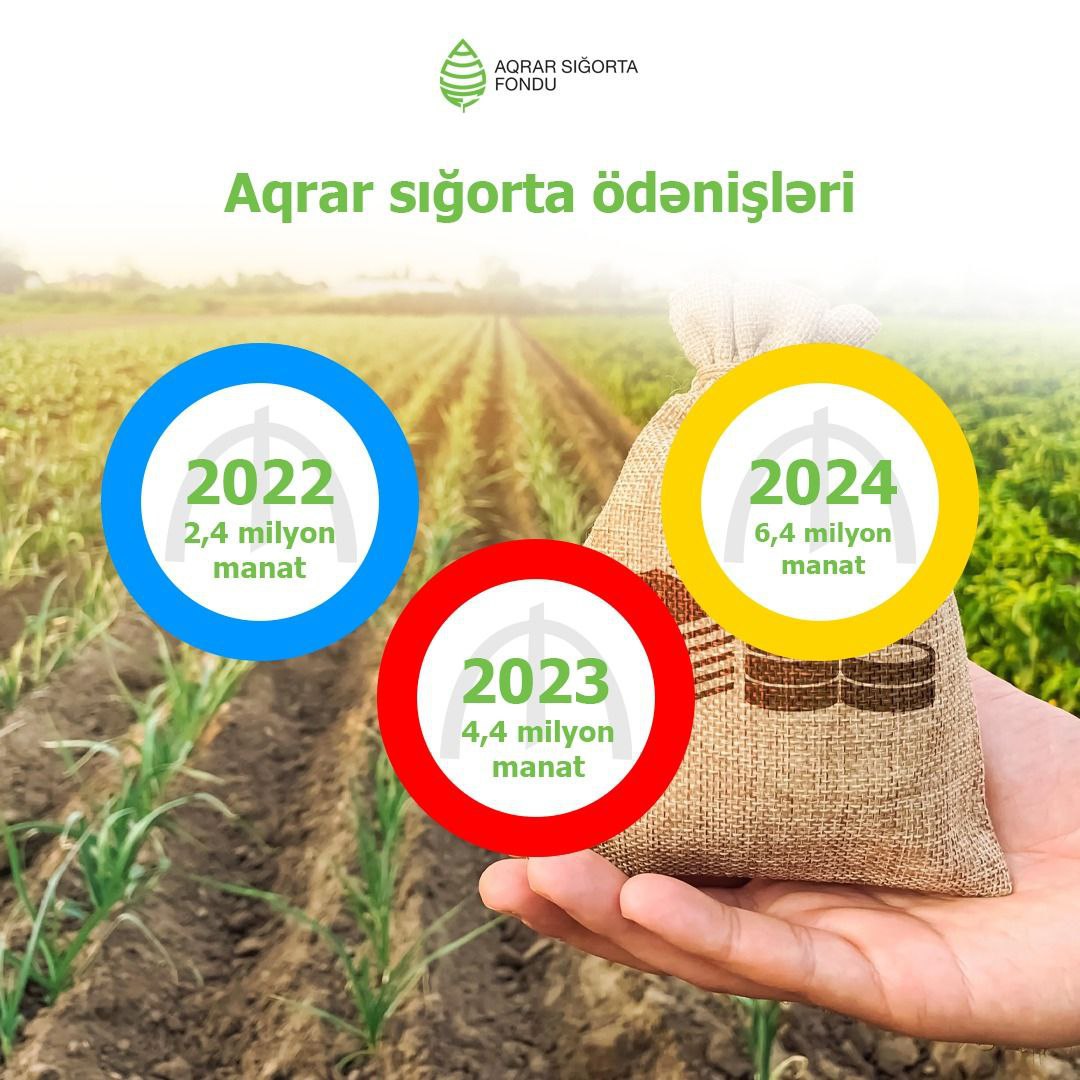 Kənd Təsərrüfatı Nazirliyinin məlumatına görə, bu, Fondun fəaliyyətə başlamasından sonra qeydə alınan ən böyük illik sığorta ödənişi məbləğidir. Əvvəlki illə müqayisədə aqrar sığorta ödənişləri 2 milyon manat və ya 46 faiz artıb.