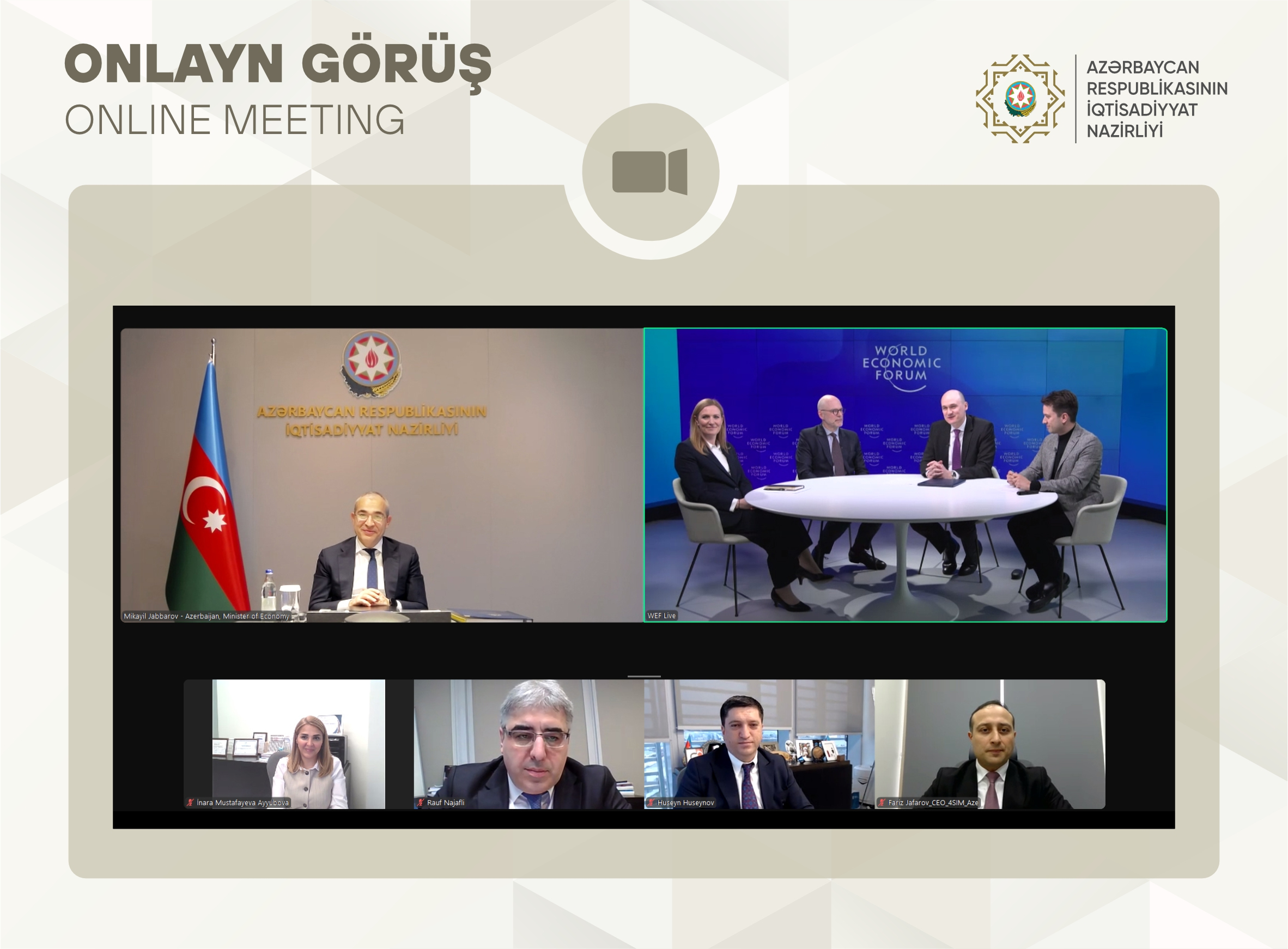 İqtisadiyyat naziri Mikayıl Cabbarov Dünya İqtisadi Forumunun (DİF) idarəedici direktoru Mirek Duşeklə videokonfrans formatında görüşüb. Görüşdə Azərbaycan və DİF arasında səmərəli əməkdaşlıq əlaqələrinin qurulduğu, ölkəmizin Forumun bir sıra təşəbbüslərində fəal iştirak etdiyi vurğulanıb. Əməkdaşlıq çərçivəsində ölkəmizdə rəqəmsal transformasiya, innovasiya və texnologiya istiqamətində atılan addımlar qeyd edilib. Tərəfdaşlığın perspektivləri və potensial imkanlar ətrafında fikir mübadiləsi aparılıb.