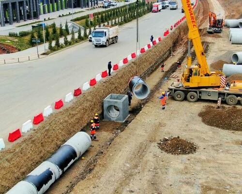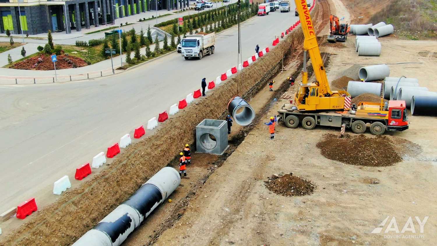Azərbaycan Avtomobil Yolları Dövlət Agentliyindən verilən məlumata görə, küçələr boyu şəhərin kommunikasiya xətlərinin (su, kanalizasiya, yağış suları boruları, qaz, rabitə və elektrik xətləri) tikintisi işləri də icra olunur.