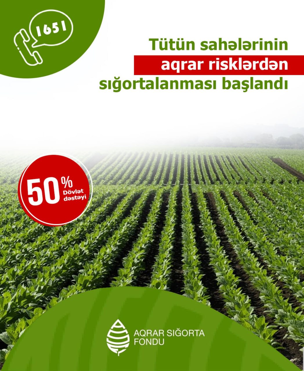 Azərbaycanda dövlət dəstəyi ilə təqdim olunan aqrar sığorta mexanizmi çərçivəsində tütün sahələrinin sığortalanmasına başlanılıb.