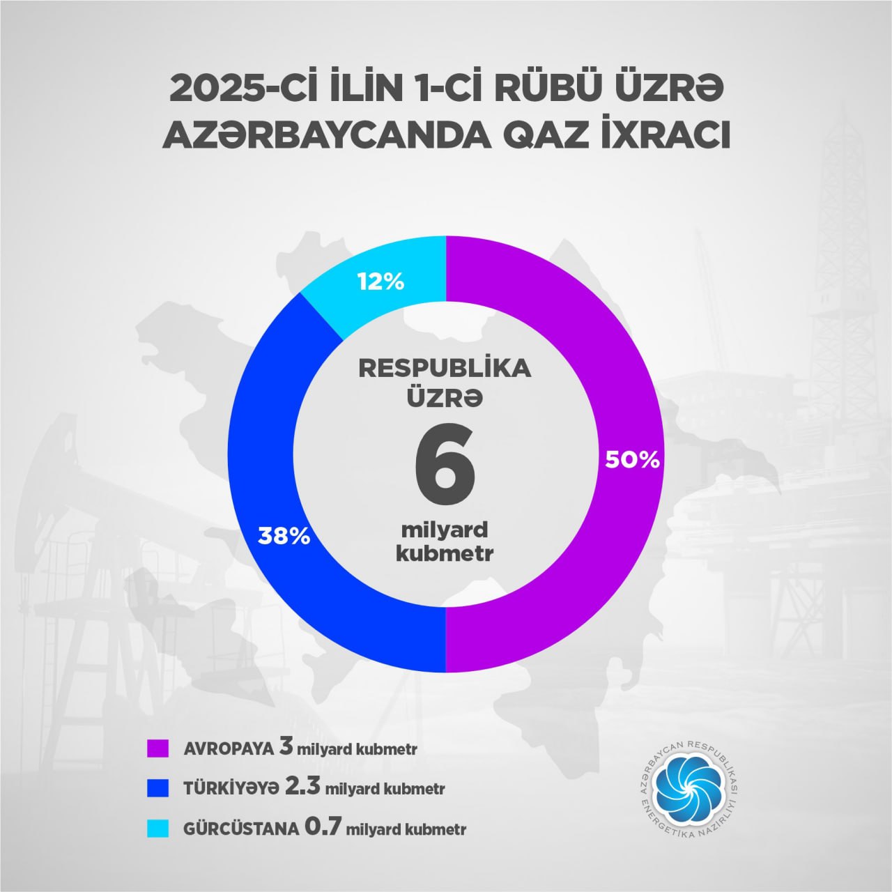 Bu ilin ilk rübündə Avropaya 3 milyard kubmetr qaz ixrac olunub