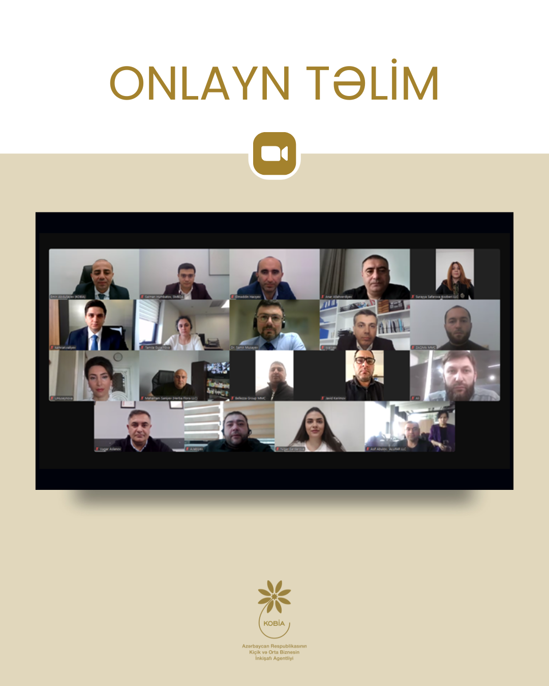 Aprel ayı üzrə ilk onlayn təlim “İxracın əsasları: Haradan başlamaq lazımdır?” və "Logistika və təchizat zəncirinin idarə edilməsi" mövzularına həsr olunub. Təlimdə Kanada İxracın İnkişafı Agentliyinin əməkdaşı, beynəlxalq ticarət sahəsində ekspert Samir Musayev tərəfindən təlimdə şirkətin ixraca hazırlığı, hədəf bazarının seçilməsi, tələbin və rəqiblərin təhlili, ixrac prosesinin əsas mərhələləri, logistika sahəsində etibarlı tərəfdaşların seçilməsi, nəqliyyat xərclərinin optimallaşdırılması, çatdırılma ilə bağlı zamanın və risklərin idarə edilməsi ilə bağlı məlumat verilib, sahibkarları maraqlandıran suallar cavablandırılıb.