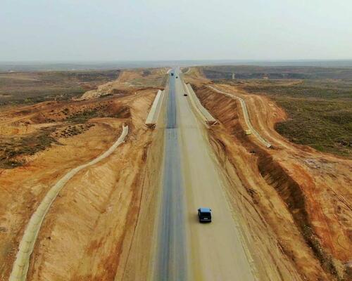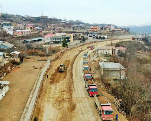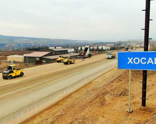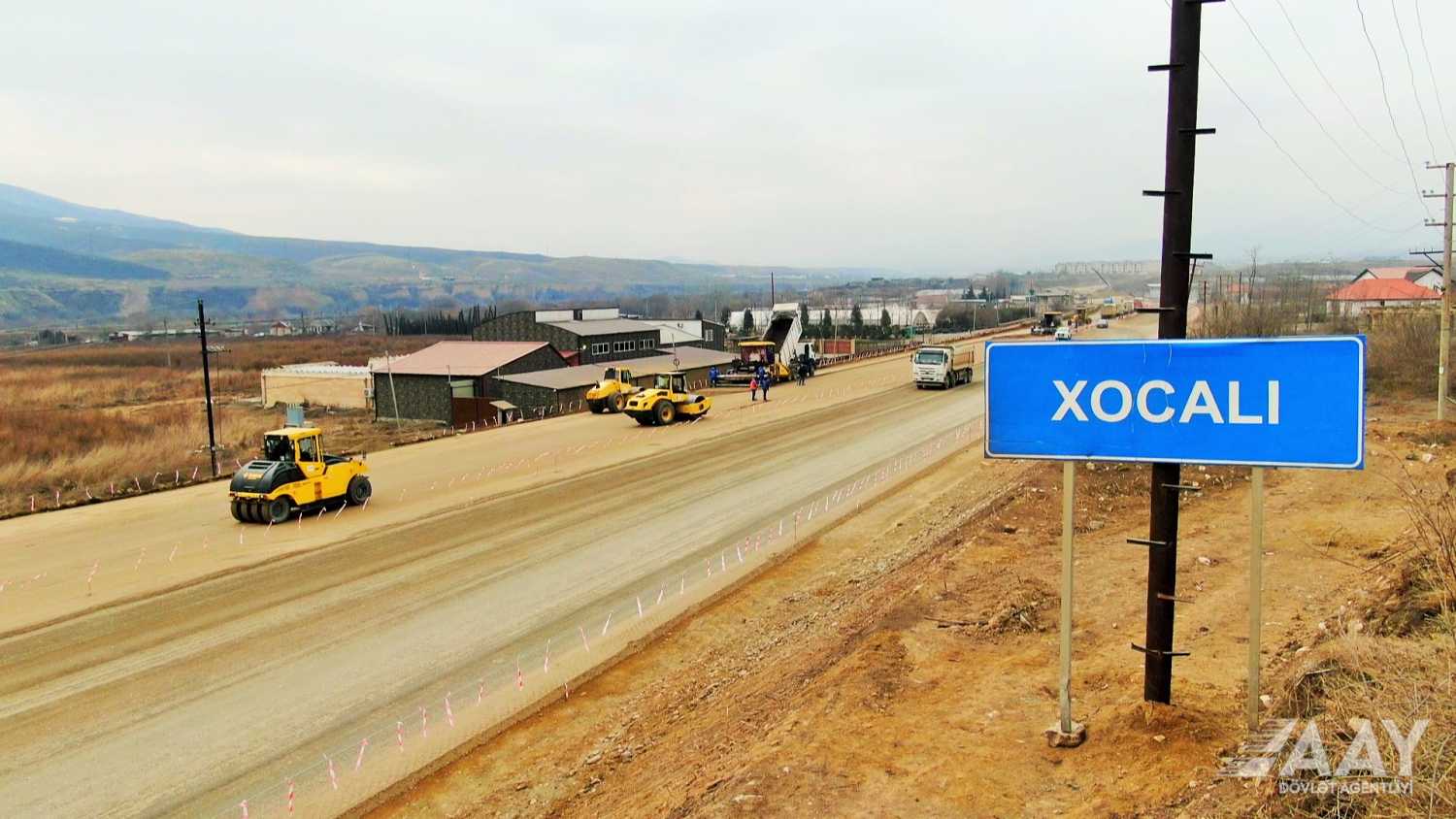 İşğaldan azad edilmiş ərazilərdə yol infrastrukturu layihələrinin icrası çərçivəsində Ağdam-Əsgəran-Xocalı-Xankəndi avtomobil yolunun tikintisi işləri sürətlə davam etdirilir.