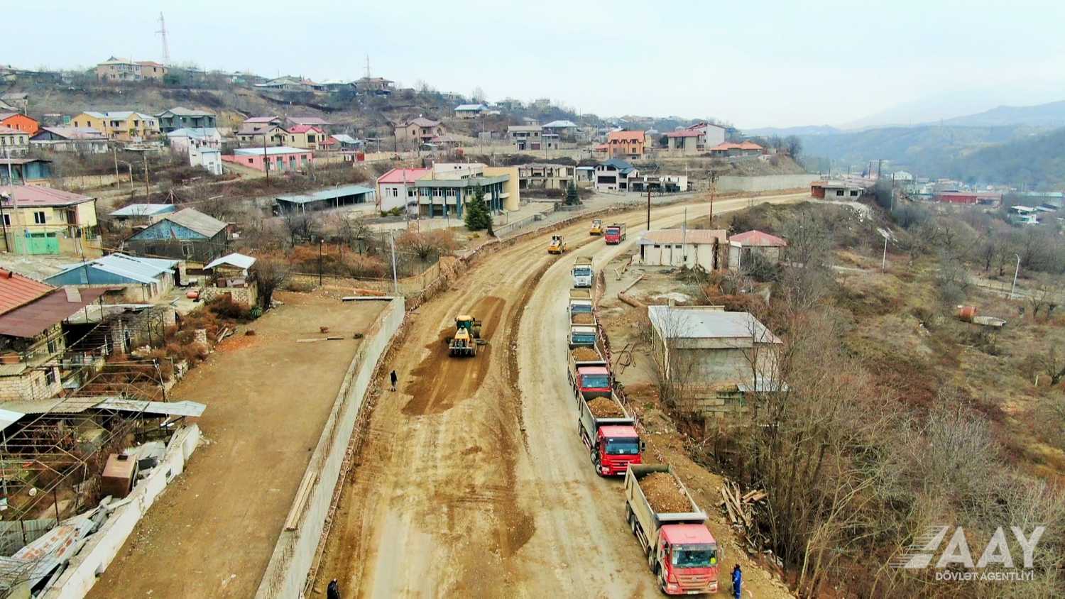 Hazırda layihə boyu torpaq işləri görülür. Belə ki, xüsusi texnikalardan istifadə olunmaqla yararsız qruntun çıxarılması və əvəzində yararlı material verilərək normativ hündürlüyə çatdırılması, yolun genişləndirilərək profilə salınması işləri həyata keçirilməklə yol geyiminin tikintisi aparılır. Yol yatağı və yol əsası hazır olan hissələr asfaltlanır. Artıq 3,6 km hissədə 2 lay asfalt-beton örtük döşənilib.