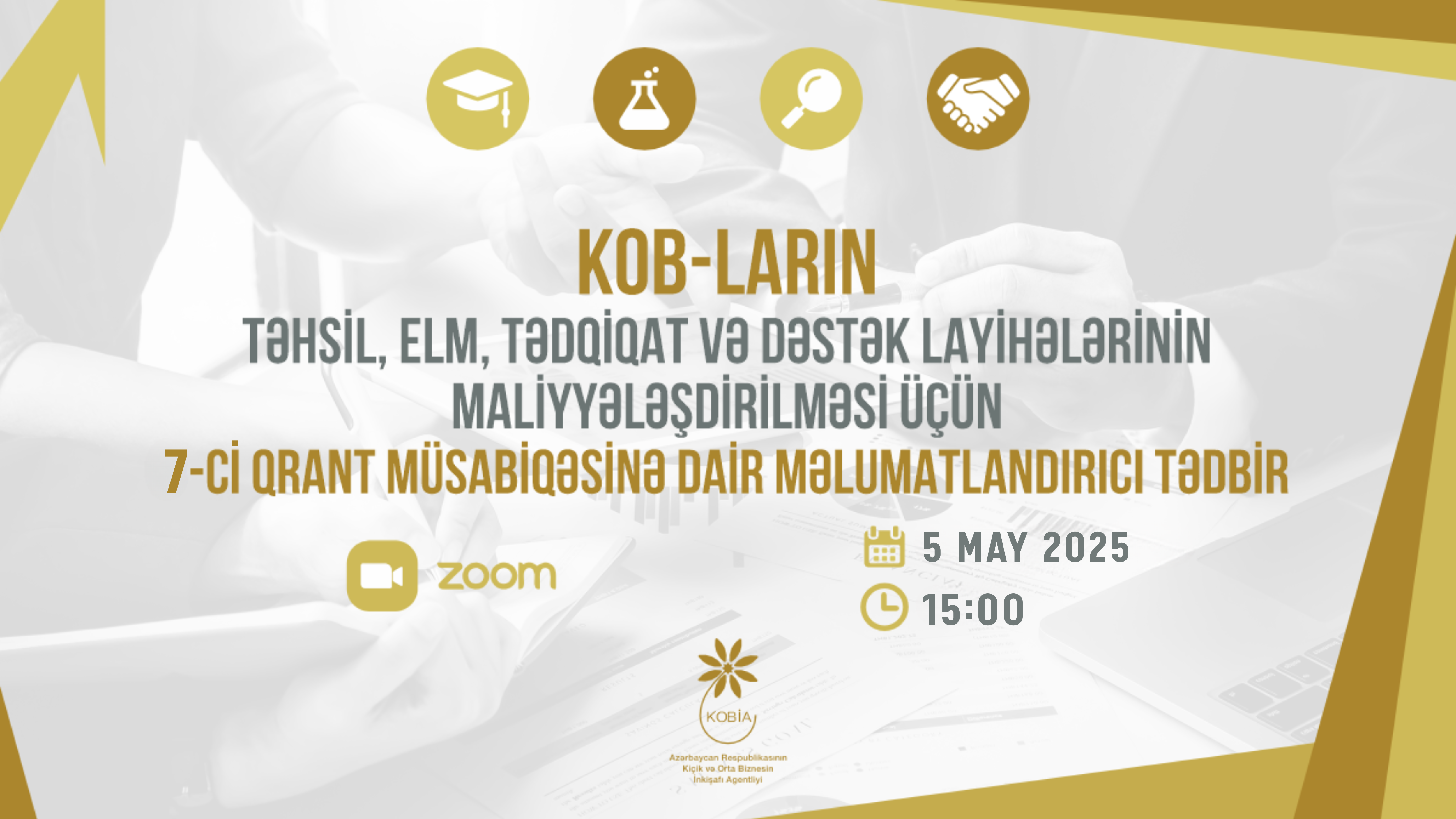 Mayın 5-də saat 15:00-da Kiçik və Orta Biznesin İnkişafı Agentliyinin (KOBİA) təşkilatçılığı ilə KOB-ların təhsil, elm, tədqiqat və dəstək layihələrinin maliyyələşdirilməsinə dəstək üçün elan edilmiş 7-ci qrant müsabiqəsinə dair onlayn formatda məlumatlandırıcı tədbir keçiriləcək.
