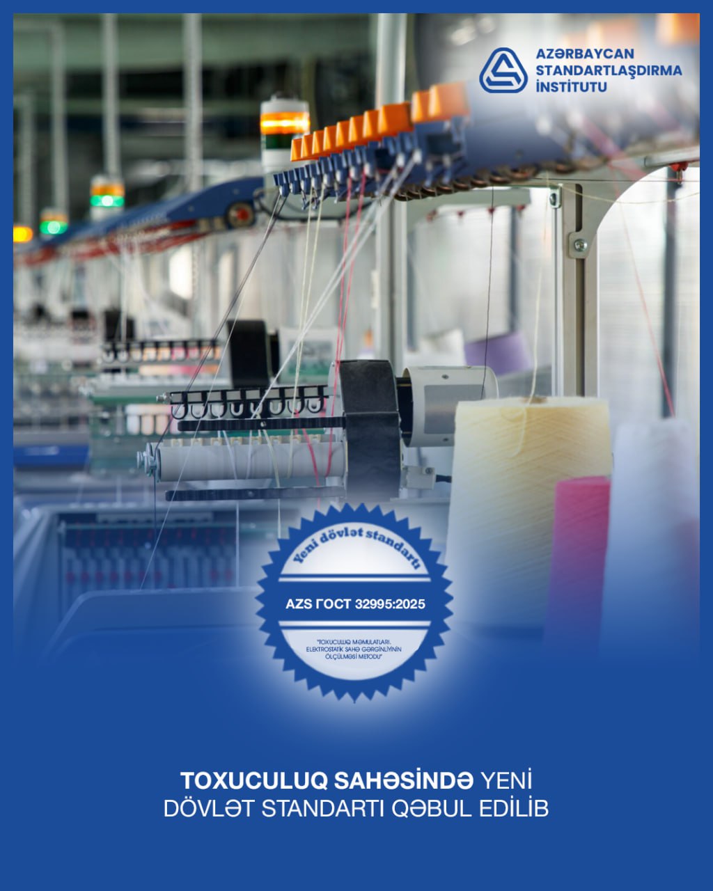 Azərbaycan Standartlaşdırma İnstitutu (AZSTAND) tərəfindən AZS ГОСТ 32995:2025 “Toxuculuq məmulatları. Elektrostatik sahə gərginliyinin ölçülməsi metodu” yeni dövlət standartı qəbul edilib.
