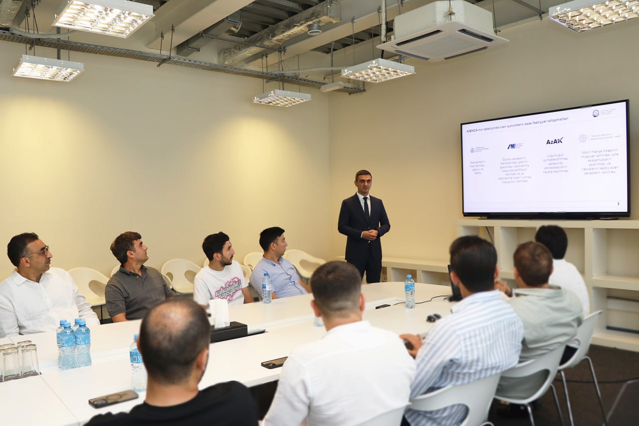 Görüş zamanı Agentliyin İstehlak bazarına nəzarət şöbəsinin müdiri Yusif Tapdıqlı və İstehlakçı hüquqlarının müdafiəsi şöbəsinin müdiri Elşən Cəfərov təqdimatla çıxış edərək istehlakçı hüquqları və istehlak bazarına nəzarət sahələrində mövcud problemlərin həlli istiqamətində Agentlik tərəfindən atılan addımlar, istehlakçıların əsas hüquqları və sahibkarların bu sahədə vəzifələri, Agentliyin istehlak bazarında nəzarət sahələri barədə ətraflı məlumat veriblər. Həmçinin ölkəmizdə istehlakçı hüquqlarının müdafiəsi üzrə etibarlı təminat sisteminin yaradıldığı və bu sahəni tənzimləyən bir sıra normativ-hüquqi aktların qəbul olunduğu diqqətə çatdırılıb.