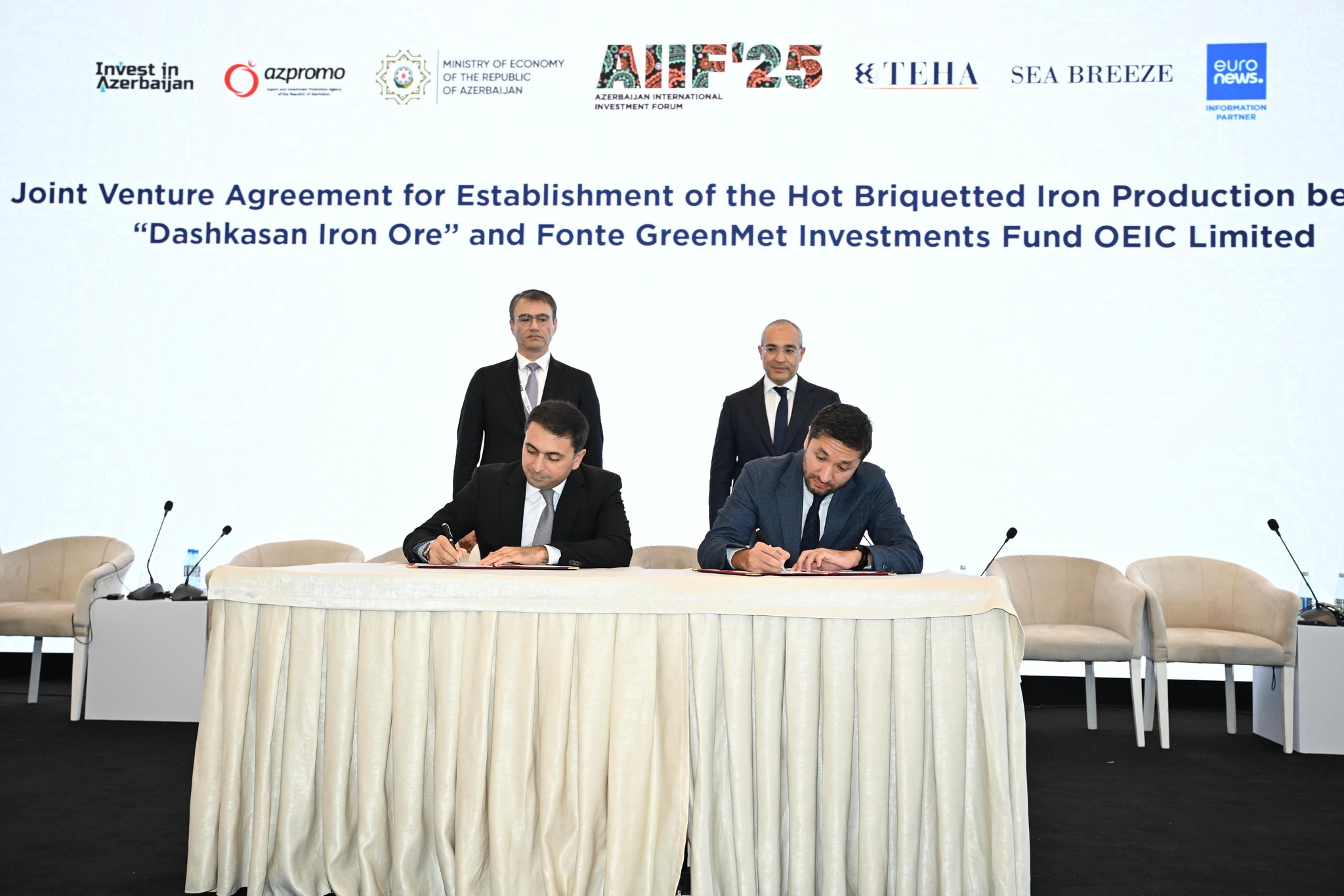 “Bakıda keçirilən Birinci Azərbaycan Beynəlxalq İnvestisiya Forumu çərçivəsində "Daşkəsən Dəmir Filiz" MMC ilə "Fonte GreenMet Investments Fund" arasında yüksək dəmir tərkibli isti briketləşdirilmiş dəmir (HBI) istehsalı üzrə birgə müəssisənin yaradılmasına dair müqavilə imzalandı. Bu təşəbbüs ölkəmizin metallurgiya sahəsində tam inteqrasiya olunmuş dəyər zəncirinin formalaşmasına, ixrac potensialının artmasına və yüksək əlavə dəyərli məhsulların istehsalına mühüm töhfə verəcək”.