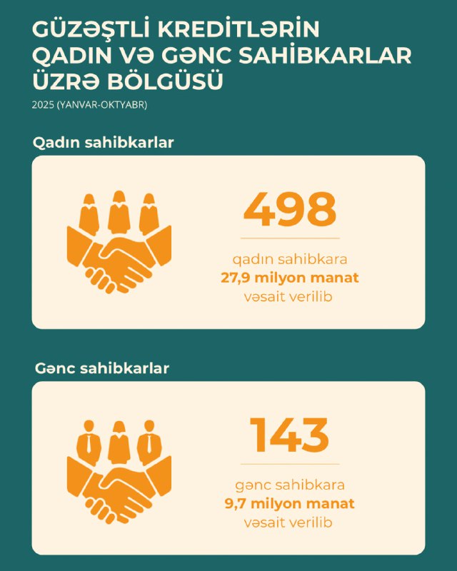 Xatırladaq ki, cari ilin ilk 10 ayında ümumilikdə sahibkarların 5355 layihəsinin maliyyələşdirilməsinə 290,4 milyon manat güzəştli kredit verilib.