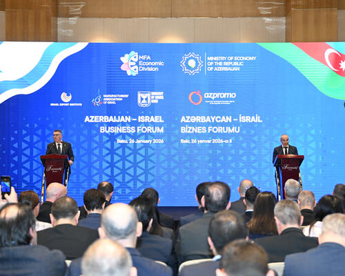Bakıda Azərbaycan-İsrail biznes forumu keçirilib. Tədbirdə hər iki ölkədən rəsmi şəxslərlə yanaşı, sənaye, tikinti, əczaçılıq, kənd təsərrüfatı, texnologiyalar, su təchizatı və idarəçiliyi, nəqliyyat-logistika, kibertəhlükəsizlik, bankçılıq, turizm və digər sahələrdə fəaliyyət göstərən 100-dən çox şirkət nümayəndəsi iştirak edib.