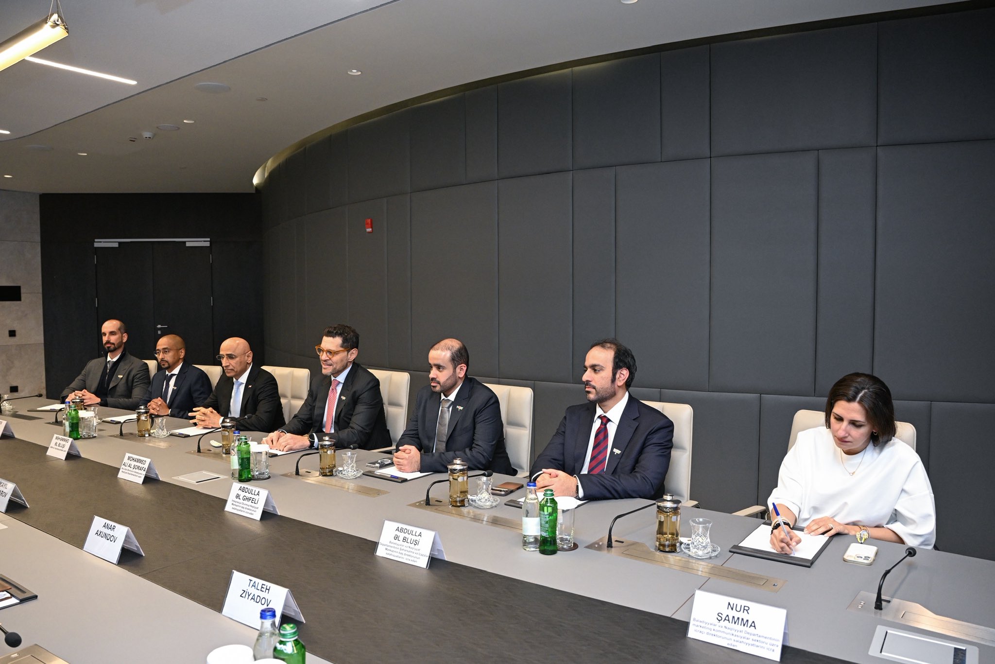 “Əbu-Dabi Əmirliyinin Bələdiyyələr və Nəqliyyat Departamentinin sədri Məhəmməd Əli Əl Şorafanın rəhbərlik etdiyi nümayəndə heyətini ölkəmizdə qarşılamaq xoş oldu. Azərbaycan – BƏƏ ikitərəfli əlaqələrinin strateji tərəfdaşlıq səviyyəsinə yüksəldiyini məmnunluqla vurğulayaraq, birgə layihələrin perspektivlərini, nəqliyyat, infrastruktur, yaşıl enerji, rəqəmsallaşma, ticarət və biznes sahələrində əməkdaşlığın təşviqini, qarşılıqlı investisiyaların artırılmasını müzakirə etdik”.