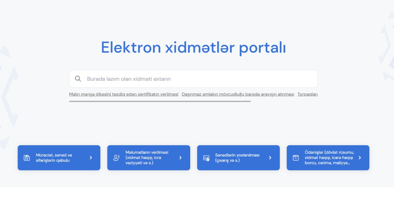 2006-cı il iyulun 6-dək müvafiq icra hakimiyyəti orqanları tərəfindən verilmiş aktlar, şəhadətnamələr və qeydiyyat vəsiqələri əsasında əvvəllər yaranmış mülkiyyət və istifadə hüquqları artıq onlayn qaydada qeydiyyata alınır. Bununla bağlı İqtisadiyyat Nazirliyi yanında Əmlak Məsələləri Dövlət Xidməti tərəfindən yeni elektron xidmətlər istifadəyə verilib.