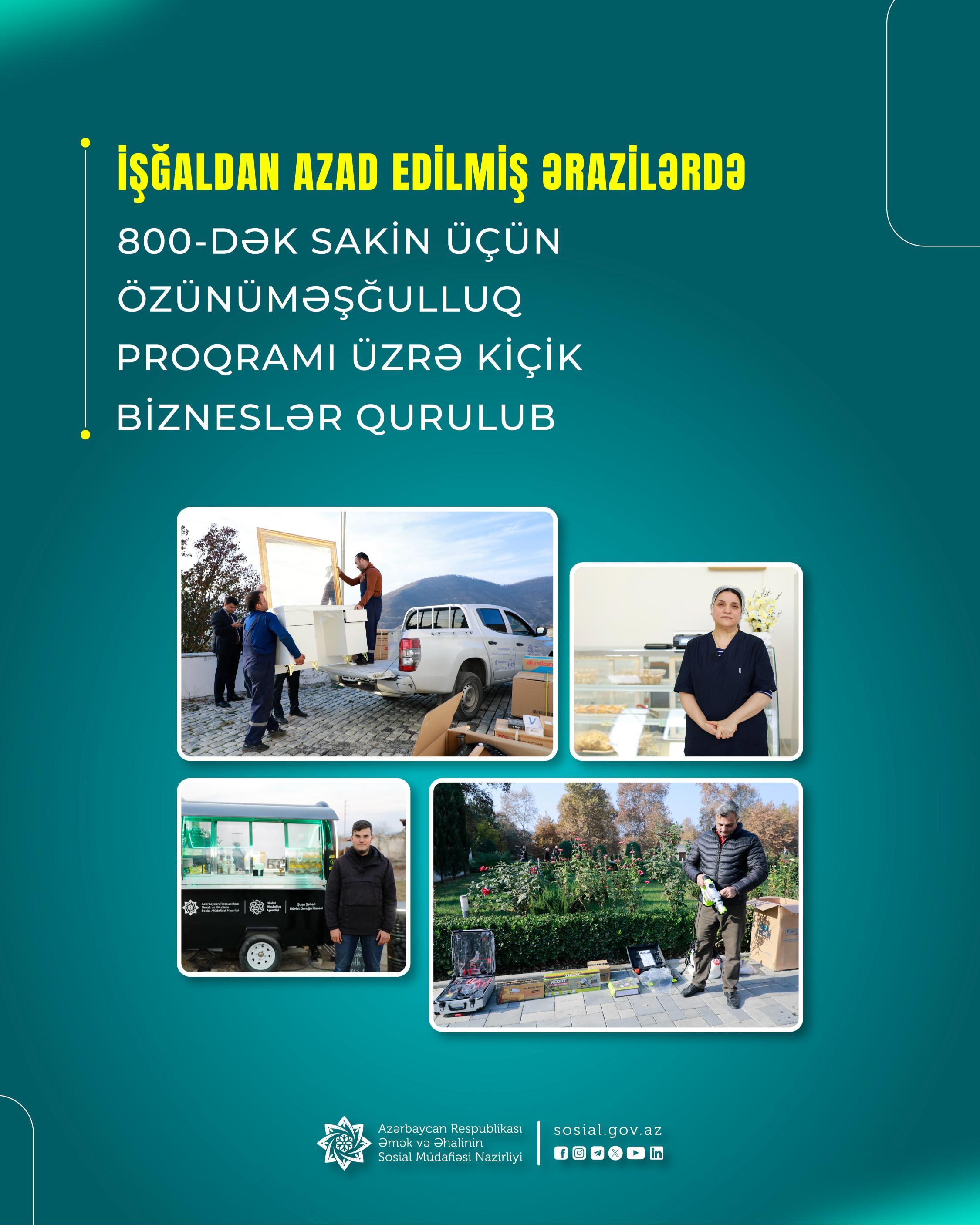 Əmək və Əhalinin Sosial Müdafiəsi Nazirliyinin tabeliyində Dövlət Məşğulluq Agentliyinin işğaldan azad edilmiş ərazilərdə həyata keçirdiyi aktiv məşğulluq proqramlarından biri də özünüməşğulluq proqramıdır.