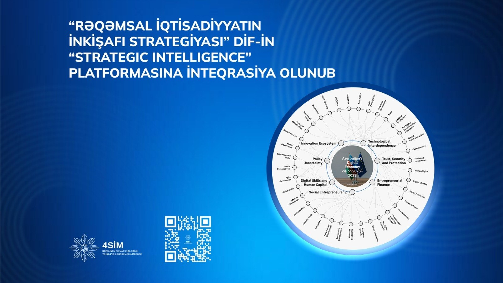 “Azərbaycan Respublikasında rəqəmsal iqtisadiyyatın inkişafına dair 2026–2029-cu illər üçün Strategiya” Dünya İqtisadi Forumunun (DİF) “Strateji İntellekt” (Strategic Intelligence) platformasına inteqrasiya olunub. Bu addım Azərbaycanın rəqəmsal transformasiya gündəliyinin qlobal səviyyədə tanıdılması və beynəlxalq bilik mübadiləsi ekosistemində aktiv iştirakının gücləndirilməsi baxımından mühüm əhəmiyyət daşıyır.