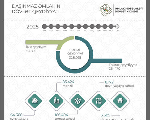 Yanvar-noyabr aylarında 328 mindən çox mülkiyyət hüququnun dövlət qeydiyyatı aparılıb 16 Dekabr 2025 11:58