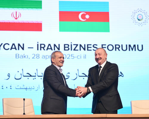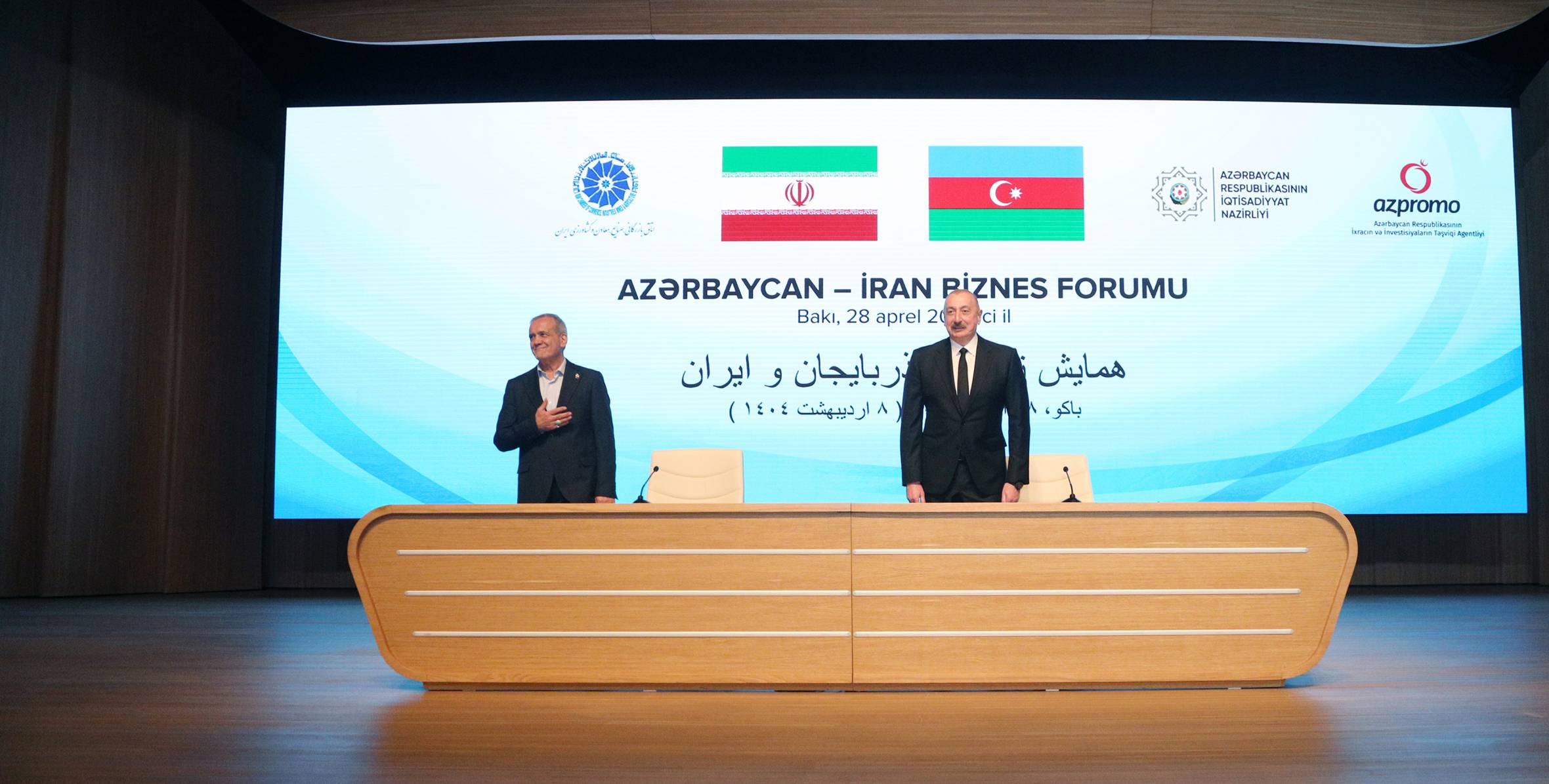Bu gün İran İslam Respublikasının Prezidenti cənab Pezeşkianın Azərbaycana rəsmi səfəridir. Deyə bilərəm ki, səfər çox uğurlu keçir. Səfər zamanı əldə edilmiş razılaşmalar, imzalanmış sənədlər bir daha Azərbaycan-İran dostluğunu, qardaşlığını təsdiqləyir. Bir sözlə, bu rəsmi səfərin çox gözəl siyasi nəticələri vardır. İmzalanmış sənədlər arasında xüsusilə prezidentlər tərəfindən imzalanmış Birgə Bəyannaməni qeyd etmək istərdim. Çox ciddi sənəddir və gələcək əməkdaşlıq üçün bizə yol göstərən sənəddir. Əlbəttə, biz istərdik ki, ticarət, iqtisadi əməkdaşlığımız da eyni nəticələri hasil etsin. Əfsuslar olsun ki, bu günə qədər bu, belə olmayıb. Ancaq əminəm ki, bu səfərdən sonra və biznes-forumun nəticələrindən irəli gələrək biz növbəti illərdə ticarət, iqtisadi, sərmayə qoyuluşu və digər bu kimi sahələrdə ciddi irəliləyiş görəcəyik. Mən şadam ki, hörmətli cənab Prezidentlə bərabər Azərbaycana böyük biznes heyəti gəlib. İrandan gələn 120-dən çox iş adamı əminəm ki, Azərbaycanda öz həmkarları ilə artıq təmaslar qurublar və biznes-forum nəticəsində real layihələr meydana gələcək.