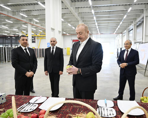 Prezident İlham Əliyev Qusar rayonunda bağçılıq və soyuducu anbar kompleksinin fəaliyyəti ilə tanış olub