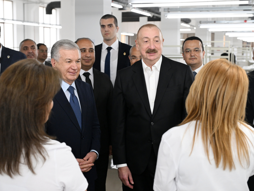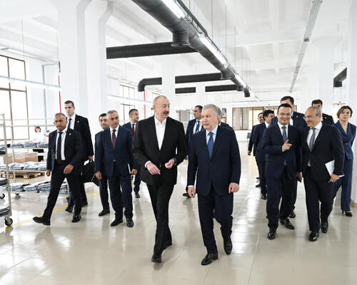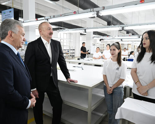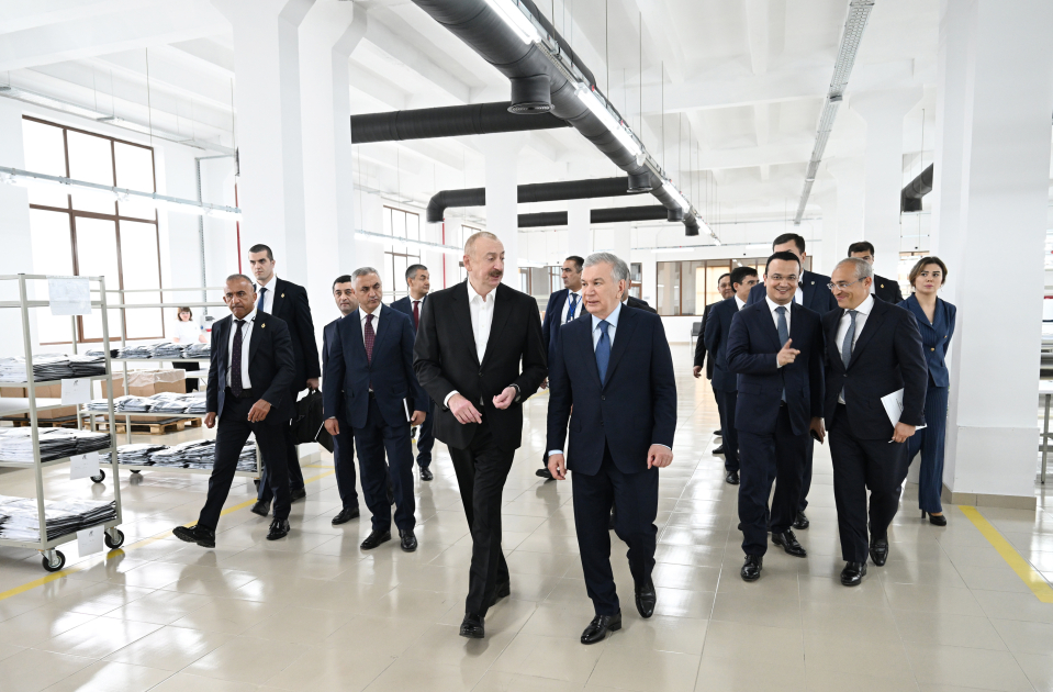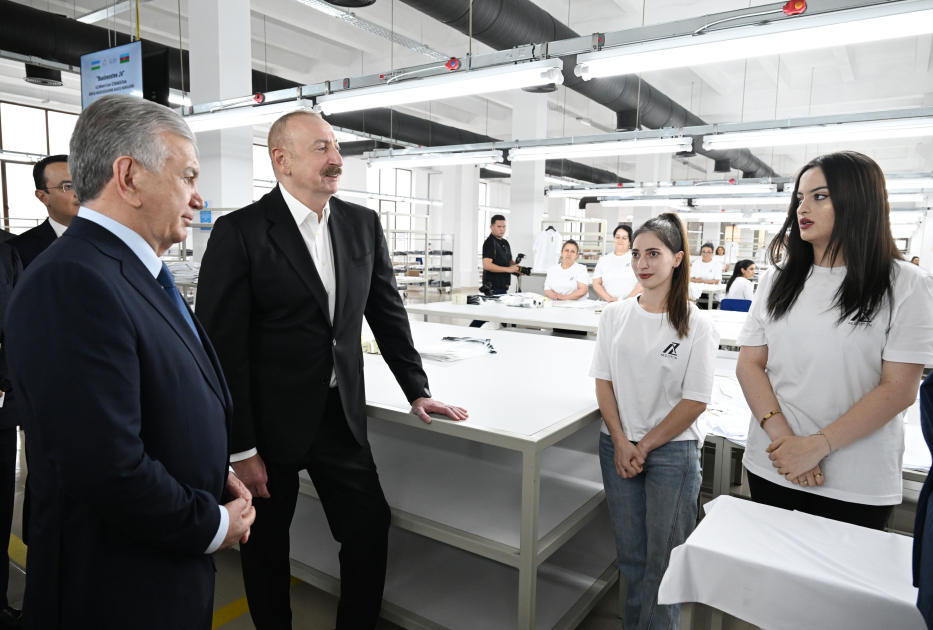 Azərbaycan və Özbəkistan prezidentləri Xankəndidəki “Businesstex JV” tikiş fabrikinin fəaliyyəti ilə tanış olublar