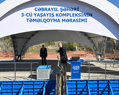 Azərbaycan Respublikasının Prezidenti İlham Əliyev oktyabrın 28-də Cəbrayıl şəhərində ikinci və üçüncü yaşayış komplekslərinin təməlini qoyub.