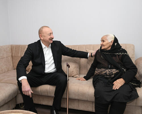 Sonra dövlətimizin başçısı Xankəndi şəhəri Kərkicahan qəsəbə sakini Yadigar Əsədovanın evində oldu.