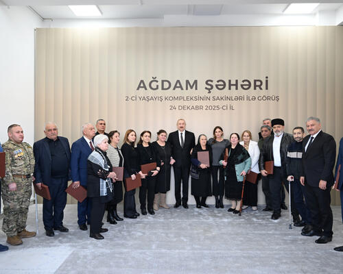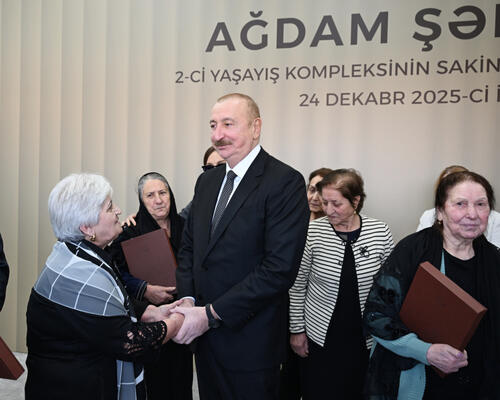 Azərbaycan Respublikasının Prezidenti İlham Əliyev və birinci xanım Mehriban Əliyeva dekabrın 24-də Ağdam şəhərində 2-ci yaşayış kompleksinin açılışında iştirak edib və buraya köçən sakinlərlə görüşüblər.