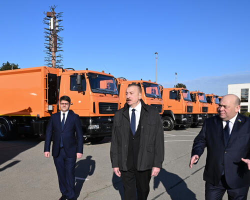 Prezident İlham Əliyev Bakıda məişət tullantıları daşıyan texnikalarla tanış olub