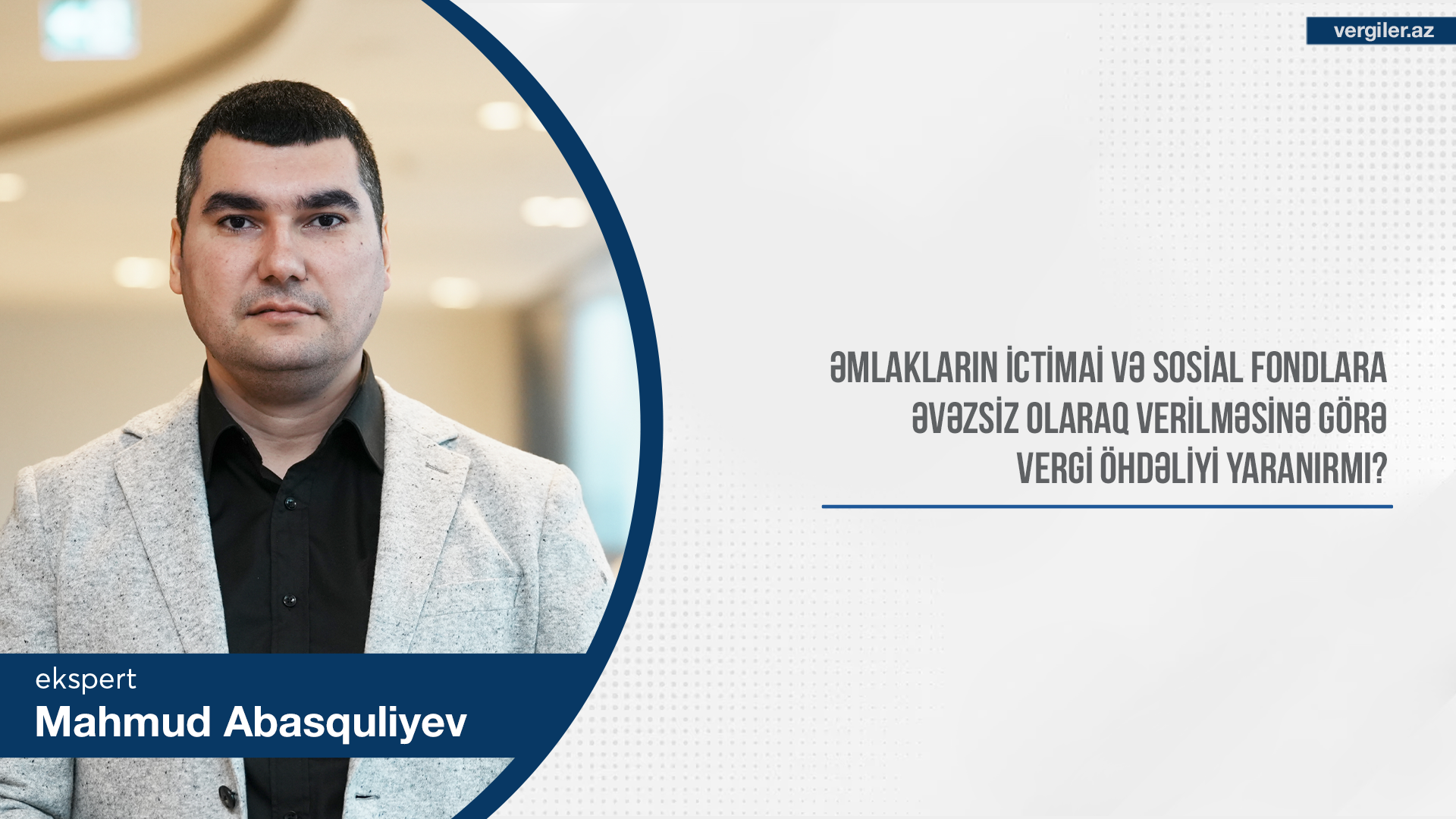 Son illərdə ictimai və sosial məqsədlər üçün yaradılmış fondlara əvəzsiz olaraq vəsaitlərin köçürülməsi, əmlakların verilməsi aktuallaşıb. ƏDV ödəyicisi olan fiziki və ya hüquqi şəxslər daşınar və daşınmaz əsas vəsaitlərini dövlət qurumlarına və ya ictimai və sosial məqsədlər üçün yaradılmış fondlara əvəzsiz verdikdə ƏDV-yə cəlb edilirmi? “vergiler.az”ın sualına iqtisadçı ekspert Mahmud Abasquliyev aydınlıq gətirir.