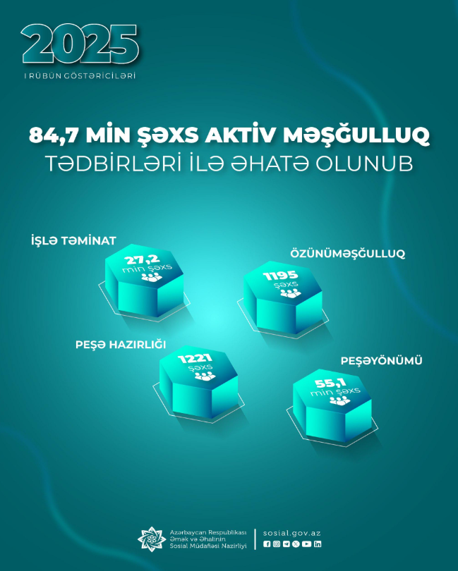 Əmək və Əhalinin Sosial Müdafiəsi Nazirliyinin məlumatına görə, onlardan 27,2 min şəxs münasib işlərlə təmin olunub. 1195 şəxs kiçik ailə təsərrüfatlarını yaratmaları üçün özünüməşğulluq proqramına, 1221 işsiz şəxs isə peşə hazırlığı kurslarına cəlb edilib.
