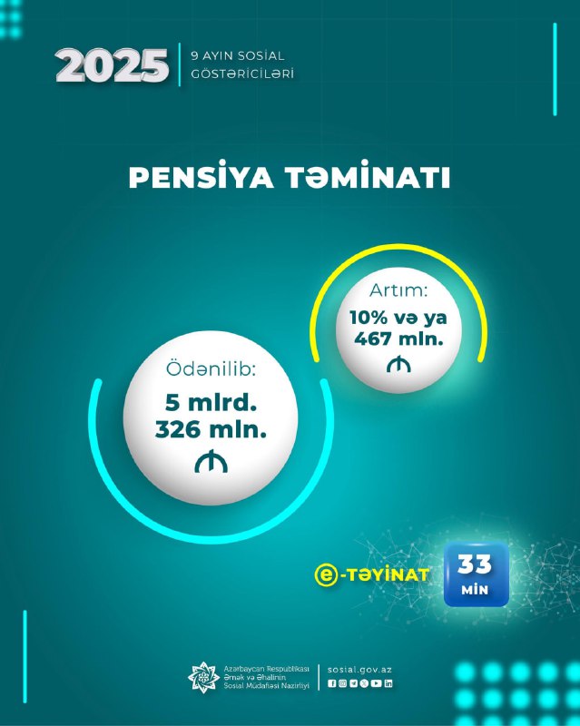Bu ilin ilk 9 ayında 33 min, elektron pensiya təyinatına başlandığı 2019-cu ilin əvvəlindən 171 min pensiya təyinatı e-sistem üzərindən proaktiv qaydada həyata keçirilib.