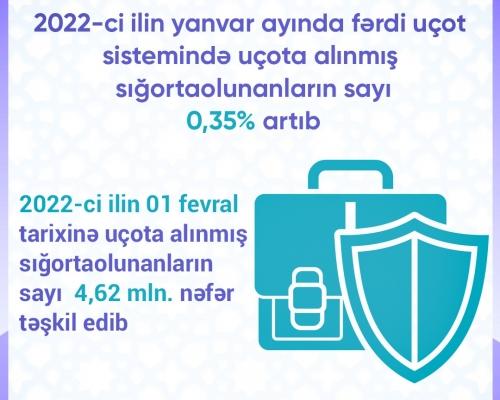 Yanvar ayında fərdi uçot sistemində uçota alınmış sığortaolunanların sayı 16,2 min nəfər artıb 11 Fevral 2022 15:01