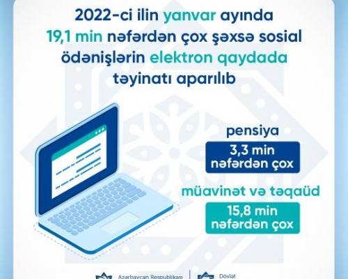 Yanvarda 19,1 min nəfərdən çox şəxsə sosial ödənişlərin elektron qaydada təyinatı aparılıb 15 Fevral 2022 14:25