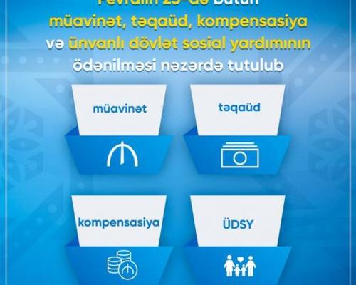 Fevralın 25-də bütün müavinət, təqaüd, kompensasiya və ünvanlı dövlət sosial yardımının ödənilməsi nəzərdə tutulub 23 Fevral 2022 11:18