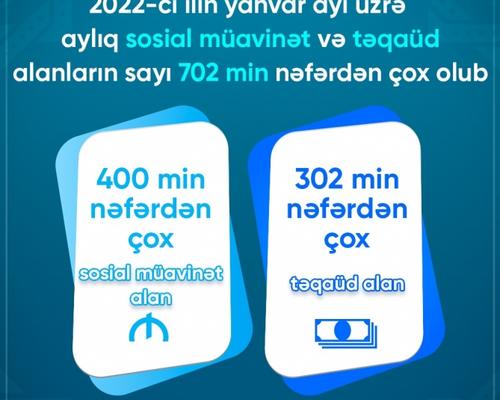 Yanvar ayı üzrə aylıq sosial müavinət və təqaüd alanların sayı 702 min nəfərdən çoxdur 24 Fevral 2022 11:06