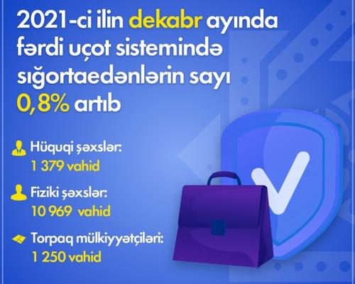 2021-ci ilin dekabr ayı fərdi uçot sistemində qeydə alınan sığortaedənlərin sayı 1,75 milyon vahid təşkil edib 18 Yanvar 2022 14:37