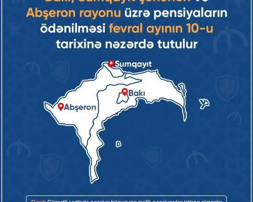 Fevralın 10-da Bakı və Sumqayıt şəhərləri, eləcə də Abşeron rayonu üzrə pensiyaların ödənişinin həyata keçirilməsi gözlənilir 9 Fevral 2022 11:08
