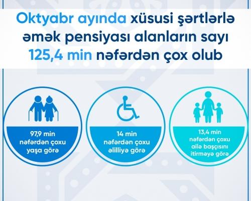 Oktyabr ayı ərzində xüsusi şərtlərlə əmək pensiyası alanların sayı 125,4 min nəfərdən çox olub 19 Noyabr 2021 10:48
