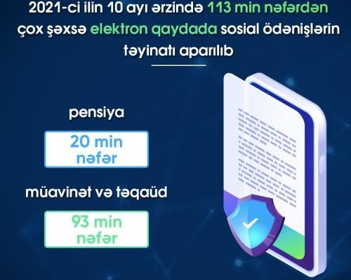 Cari ilin 10 ayı ərzində 113 min nəfərdən çox şəxsə elektron qaydada sosial ödənişlərin təyinatı aparılıb 22 Noyabr 2021 10:54