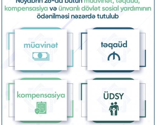 Noyabrın 26-da bütün müavinət, təqaüd, kompensasiya və ünvanlı dövlət sosial yardımının ödənilməsi gözlənilir 23 Noyabr 2021 11:32