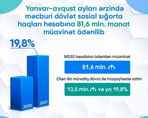 Yanvar-avqust ayları ərzində məcburi dövlət sosial sığorta haqları hesabına 81,6 milyon manat müavinət ödənilib 1 Oktyabr 2021 11:51