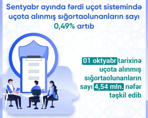 1 oktyabr tarixinə uçota alınmış sığortaolunanların sayı 4,54 milyon nəfər təşkil edib 11 Oktyabr 2021 10:32