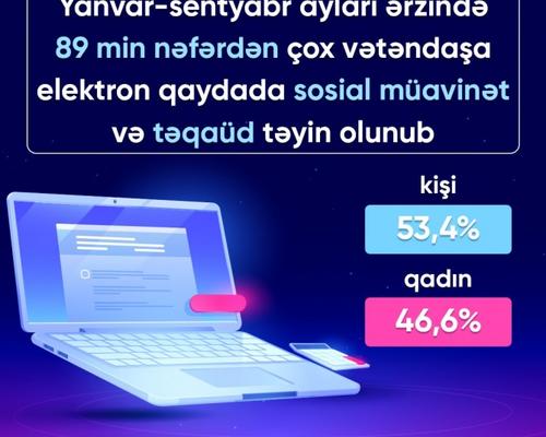 Yanvar-sentyabr ayları ərzində 89 min nəfərdən çox vətəndaşa elektron qaydada sosial müavinət və təqaüd təyin olunub 15 Oktyabr 2021 11:18