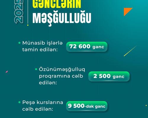 Son bir ildə daha 2500 gənc üçün müxtəlif iqtisadi fəaliyyət sahələri üzrə kiçik bizneslər qurulub 2 Fevral 2026 14:20