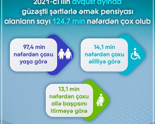 Avqustda xüsusi şərtlərlə əmək pensiyası alanların sayı 124,7 min nəfərdən çox olub 24 Sentyabr 2021 12:41
