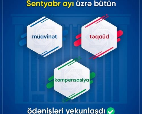 Sentyabr ayı üzrə bütün müavinət, təqaüd və kompensasiyaların ödənişi həyata keçirilib 24 Sentyabr 2021 14:31