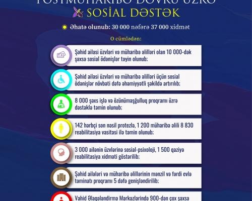 Şəhid ailələri üzvləri, qazilər və erməni terrorundan zərər çəkənlərdən ibarət 30 minədək şəxs sosial dəstəklə əhatə olunub 27 Sentyabr 2021 17:37