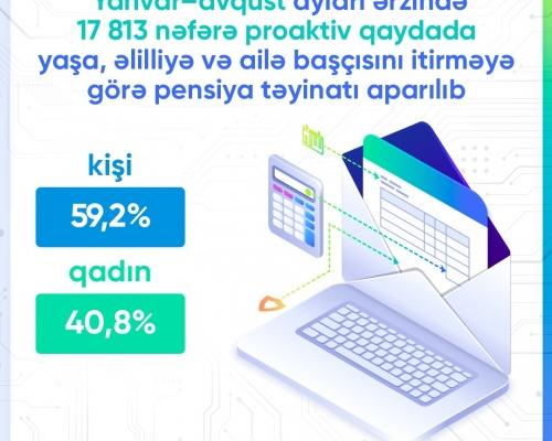 Yanvar–avqustda 17 813 nəfərə proaktiv qaydada yaşa, əlilliyə və ailə başçısını itirməyə görə pensiya təyinatı aparılıb 29 Sentyabr 2021 12:31