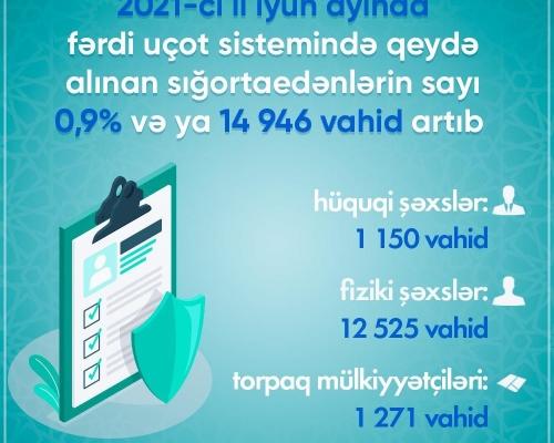 İyunda fərdi uçot sistemində qeydə alınan sığortaedənlərin sayı 1,68 milyon vahid təşkil edib 28 İyul 2021 10:32